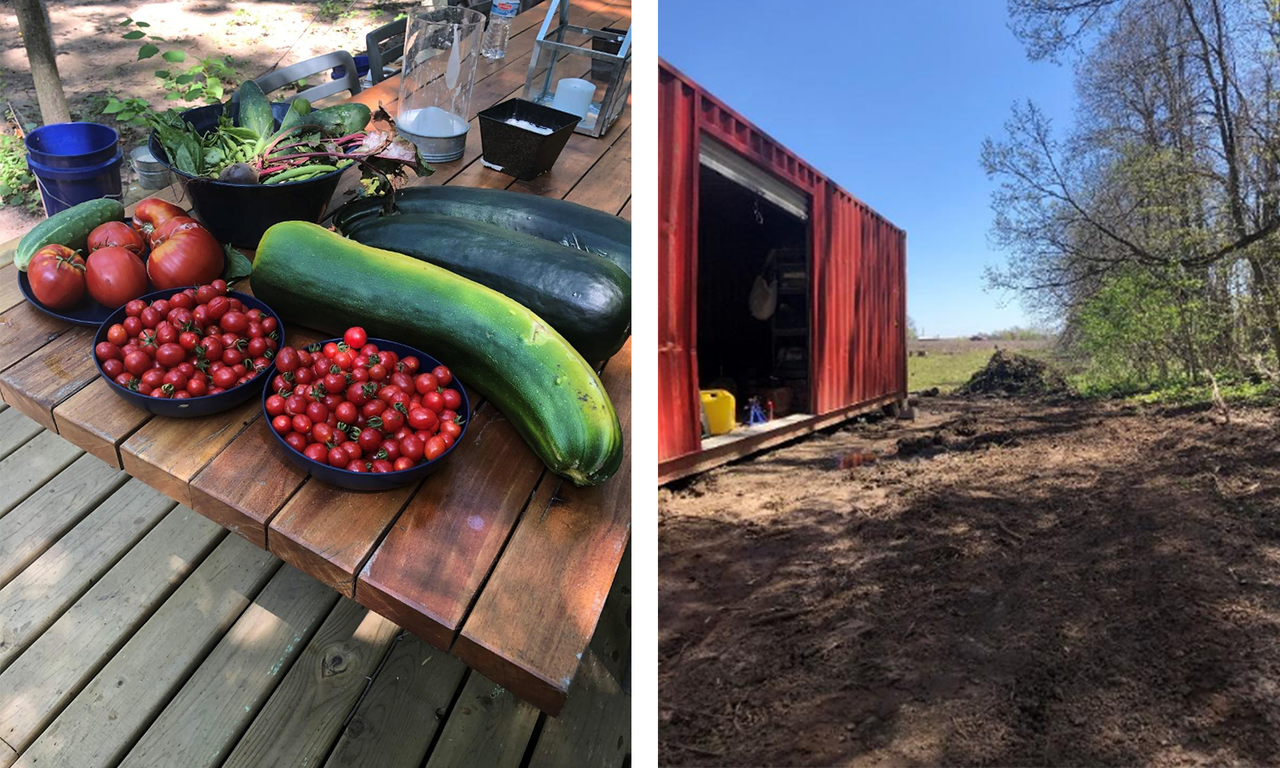 A few other odds and ends successes: I am happy to report that the raised bed vegetable garden did indeed yield some produce that wasn’t devoured by animals. We have large quantities of cherry tomatoes, heirloom tomatoes, basil, green beans, kohlrabi, peas, cucumbers, strawberries, arugula, and a lot of very large zucchini. I’m quite honestly amazed, especially since this was accomplished without running water for a majority of the summer. The shipping container has also been organized—surprising how quickly one can fill up 40 feet of space—and now contains tools, our ATV, building materials, and my 18’ in-progress kayak.