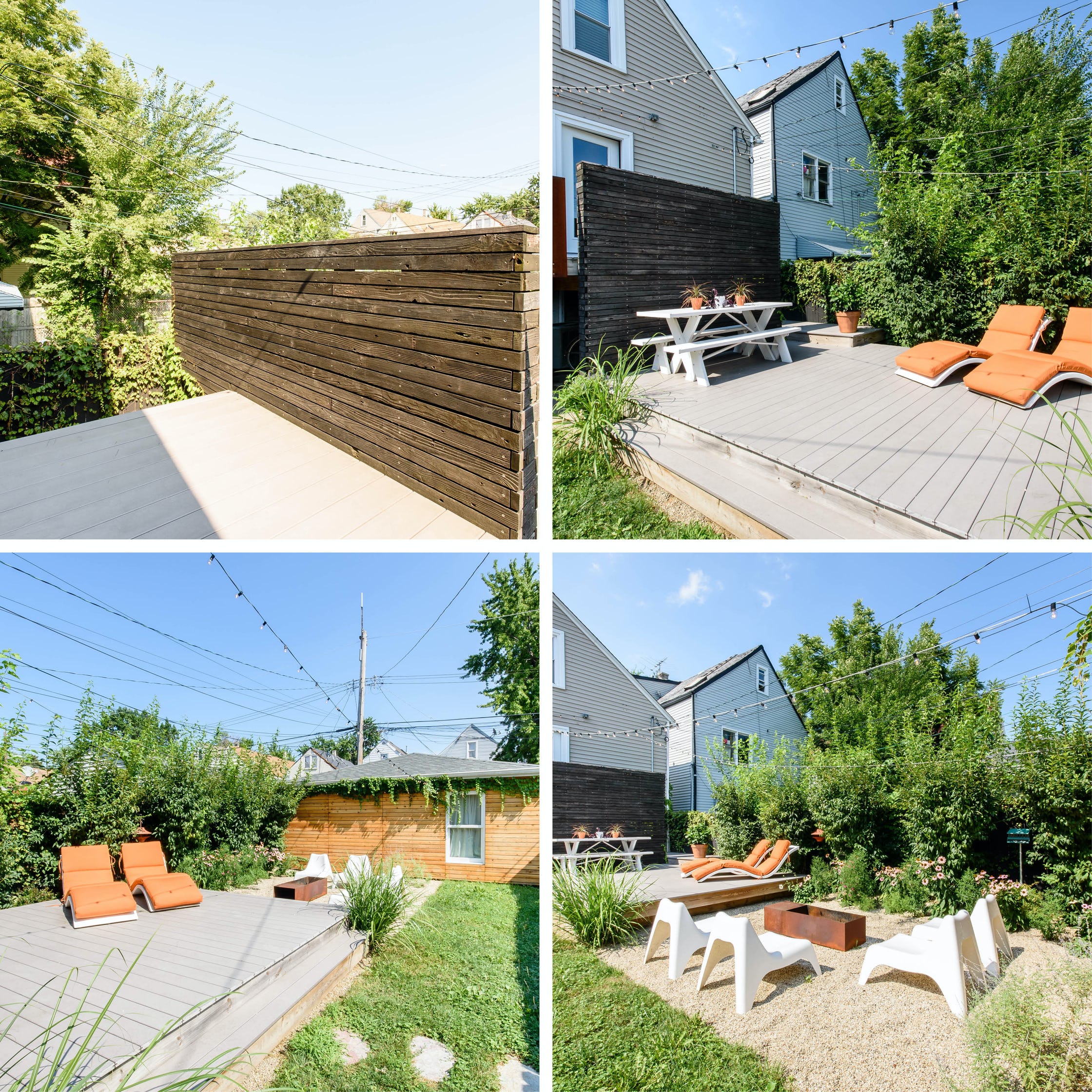 I worked as the designer and carpenter on this residential deck project. I like to think of low decks as hovering above the ground. The structural system has cantilevers inherent to it that support this effect. I used Timbertech decking with hidden fasteners on pressure treated framing. The screen walls is made from the previous deck that occupied this space which was removed, milled, stained and sealed. The cantilever rail is bent corten steel. - Greg