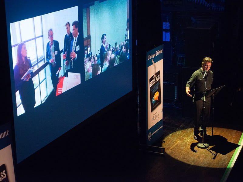 Michael Wilkinson, President of Wilkinson Design Corporation speaks at Pecha-Kucha. PechaKucha Chicago/Chicago Tribune Photojournalism