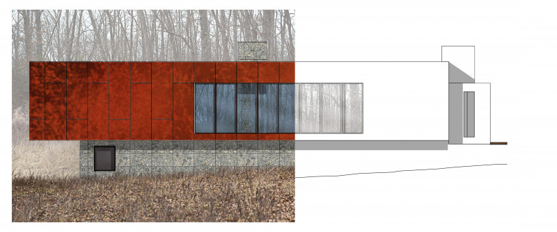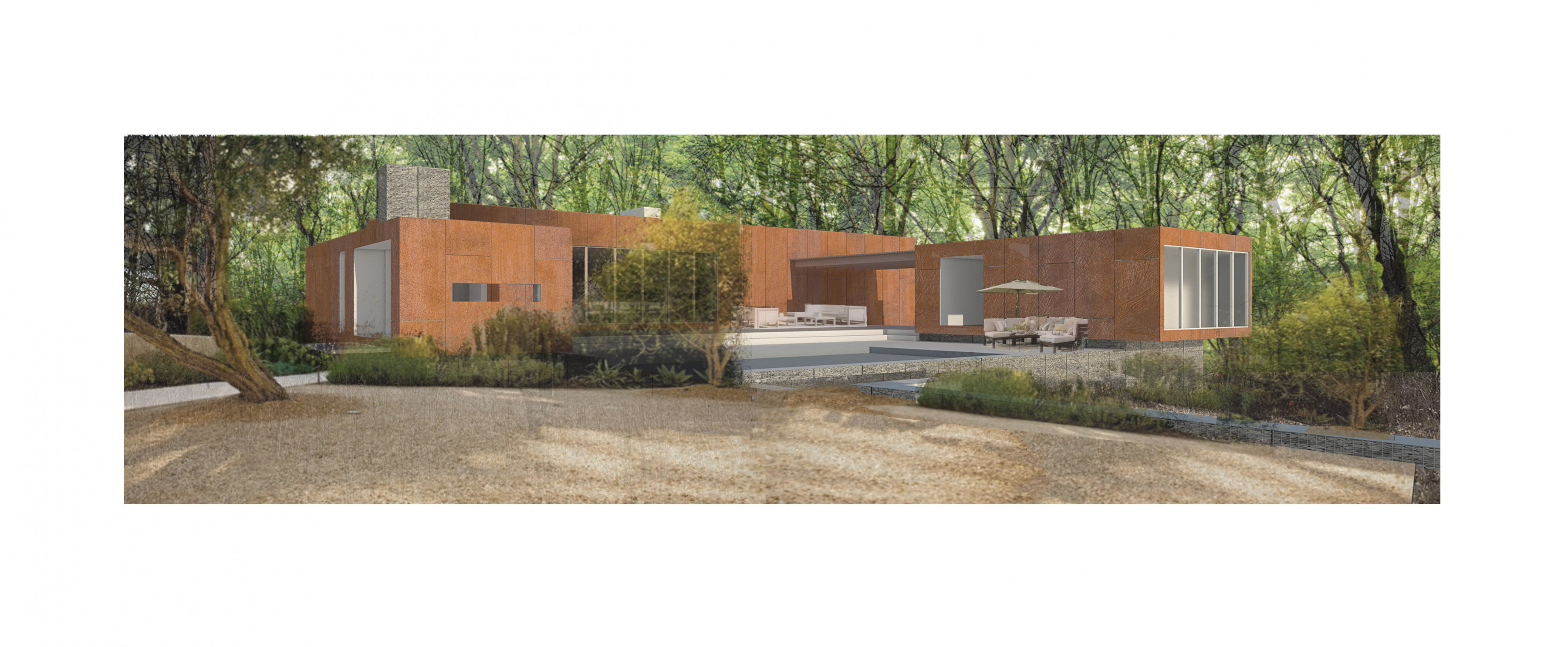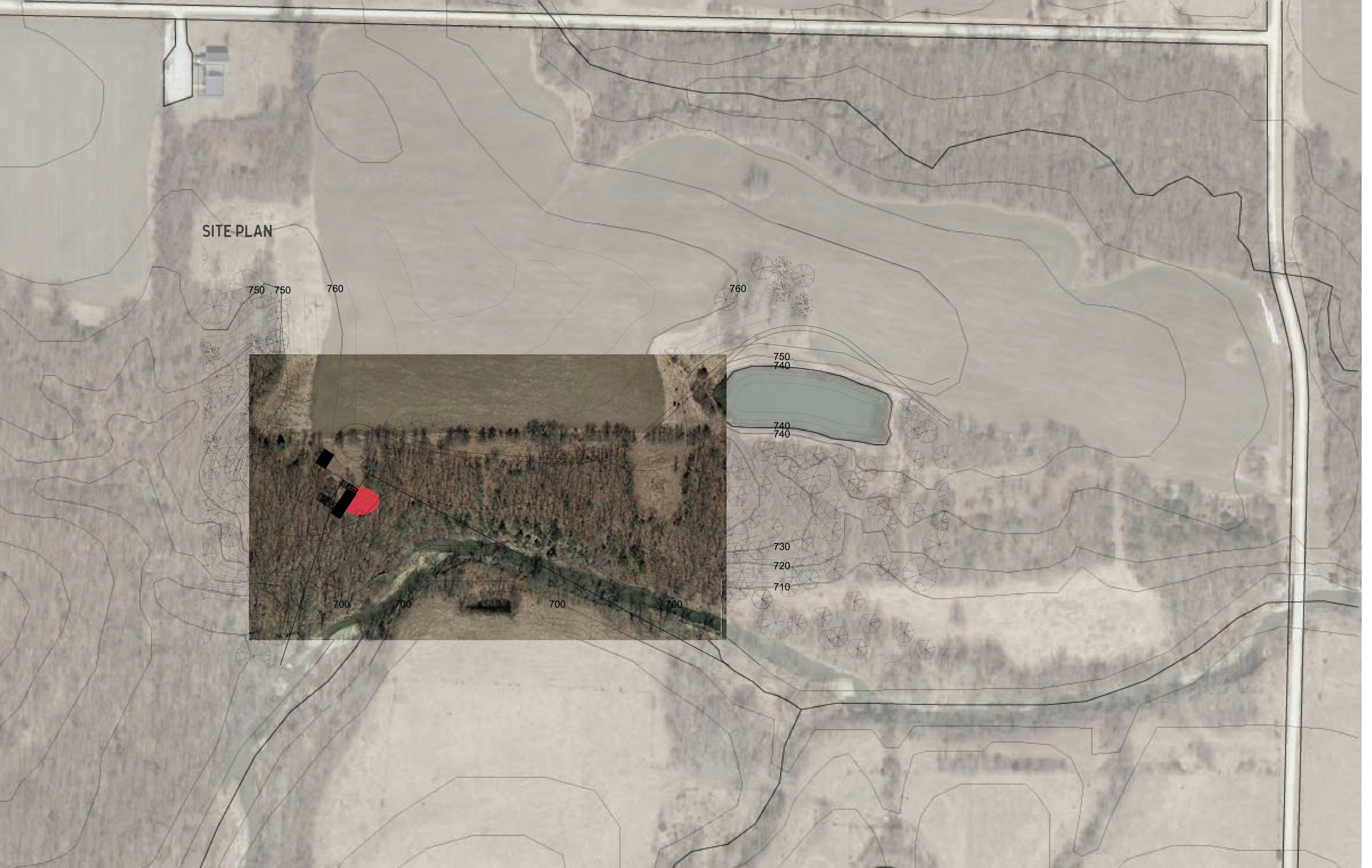 This project was born from a desire to frame the view of the surrounding wooded landscape, existing mature oak trees, and steep ravine. The client, a photographer and her recently retired husband-turned-farmer, had just sent their youngest child off to college. They were ready to make their move to the country, outside a small town where they had both grown up. Visiting the site while accompanied by a photographer helped us understand the site differently, and we began to conceive of the building as an aperture through which the landscape could be framed and experienced. By placing a series of simple structures in a configuration that would enhance the appreciation of this unique site on a 500 acre farm, we created a peaceful home that pays homage to the beautiful landscape.