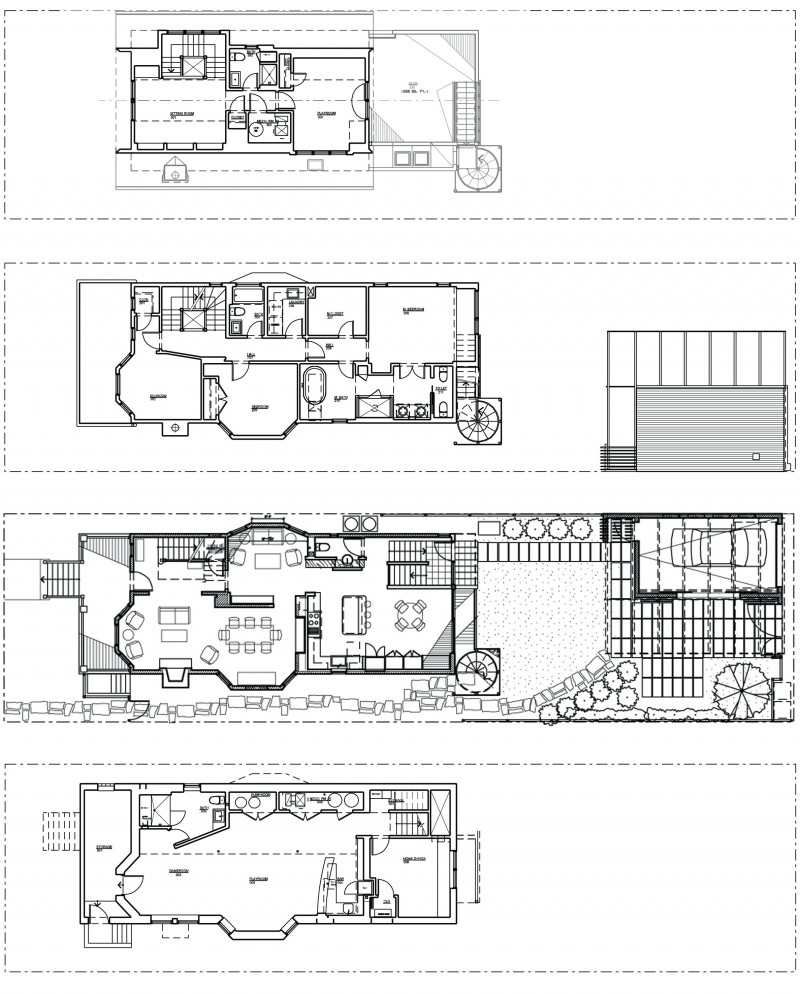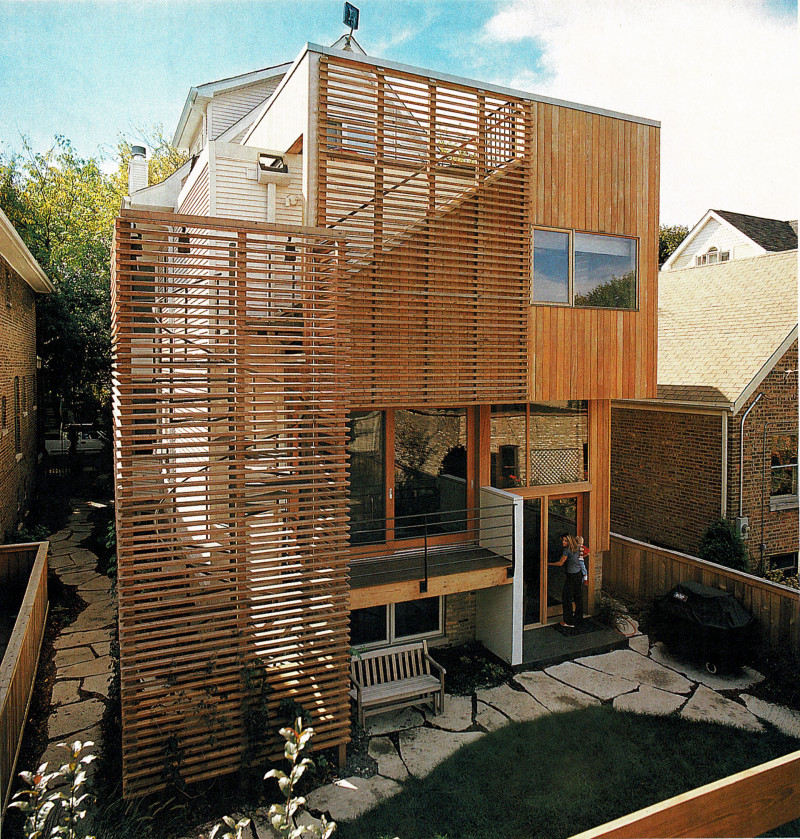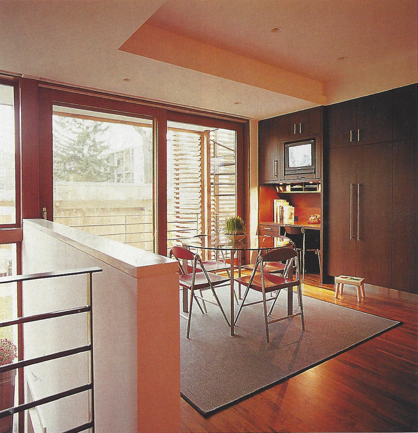 While the front of the house remained consistent with the predominantly frame homes on the street, including the requisite front porch, the rear of the house assumes a much different, more contemporary environment, with large windows and screens for the private and outdoor functions of the site.