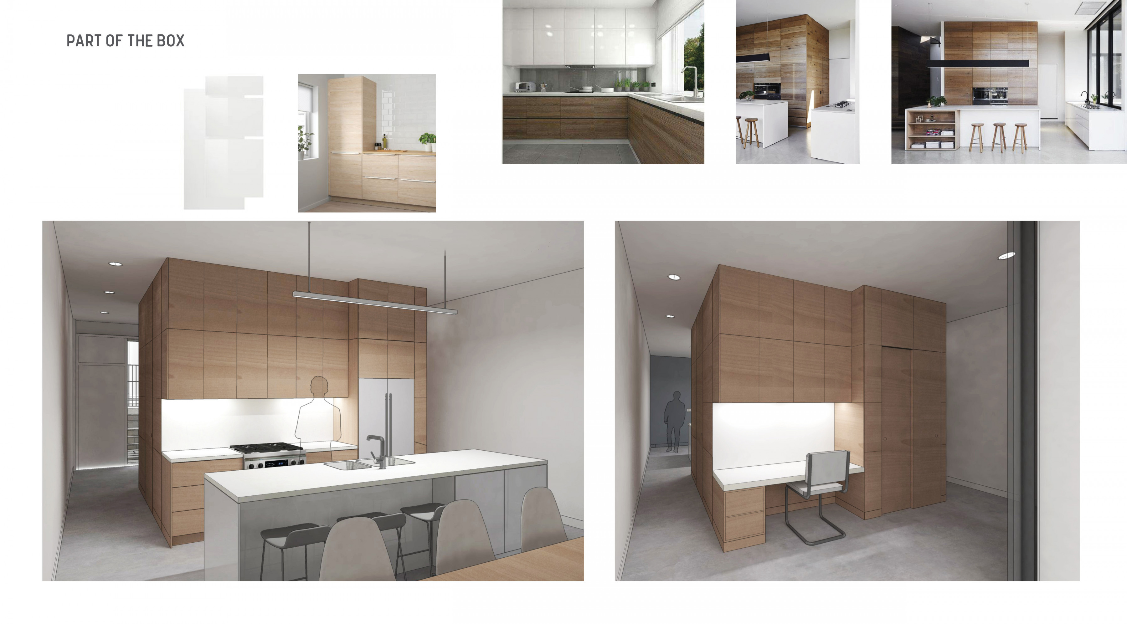 The following are clips from the Design Development Presentation to the client, assembled by project architect Amelia Tabeling. In addition to digital modeling and reference imagery, Level also provided cut sheets of actual products to convey design intent.