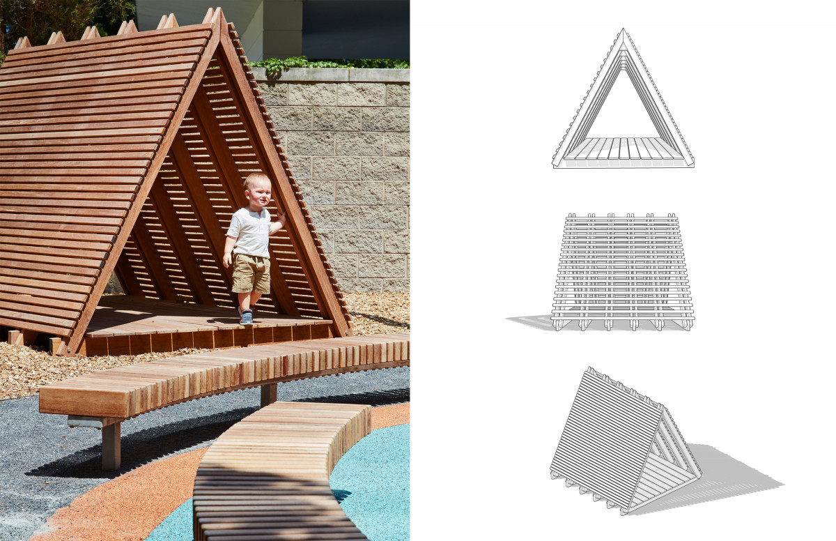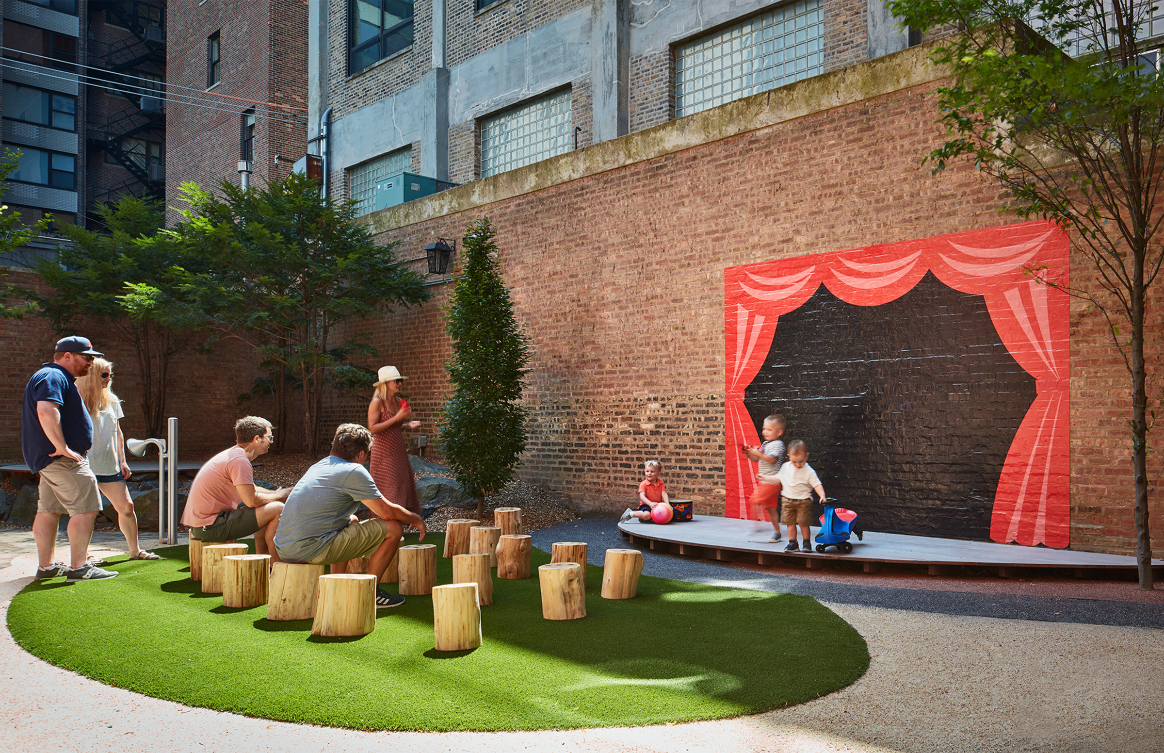 A stage for theatrical performances and an orchestra pit round out some of the opportunities for play and engagement, with FSC Certified Ipe decking materials used for the benches and stage.