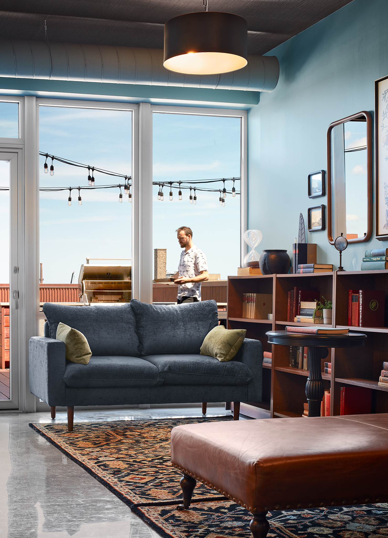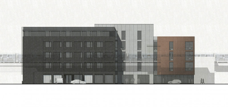 With a mere twenty-two feet of frontage on Montrose Avenue, the retail heart of the neighborhood, the design challenge was to establish a street presence for the retail space, as well as to create a residential entry that would draw people to the front door. Additionally, the depth of the site provided an opportunity to design an “alternate front façade," allowing us to treat the side elevation facing the El station as the front façade, and using that exposure as an opportunity to introduce the building to the 62,000 train passengers commuting past The Henry each day.