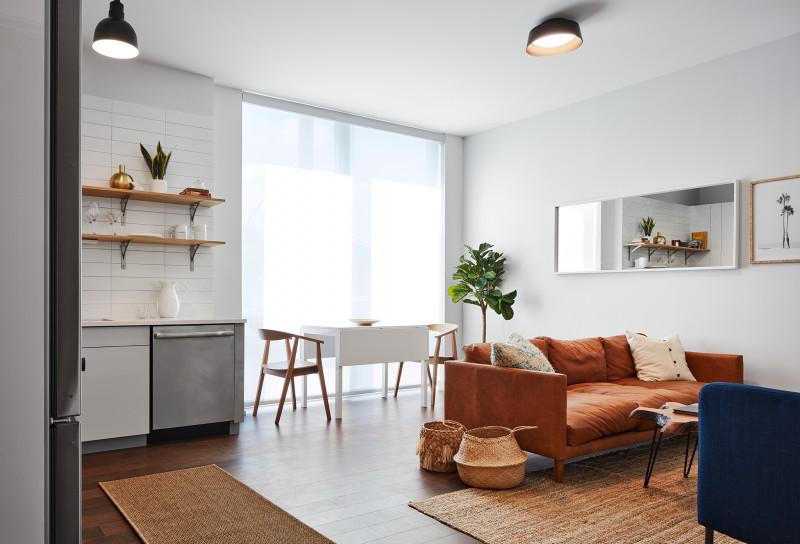 The third, fourth, and fifth floors extend above the height of the El tracks, so the units facing south and east have downtown views and receive abundant natural light. Because trains must slow down and stop at the station, noise is much less of an issue in this location, as opposed to one midway between stations, where train speed and noise are at a maximum.