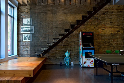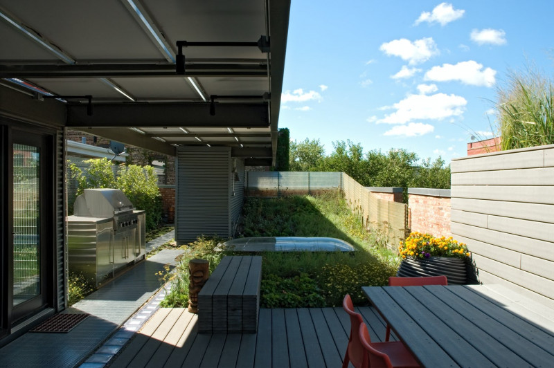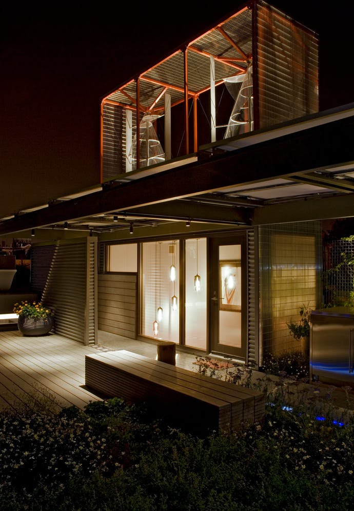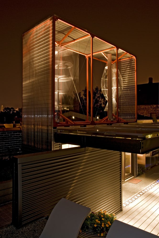 For this project, we undertook converting a former tavern into a live-work space for a husband and wife and their record label business. The major objectives were to design for maximum energy conservation, as well as to generate energy on-site. Our goal was to combine alternative technologies and a sophisticated palette of new and reclaimed materials to co-exist in architectural harmony. This strategy also helped achieve the environmental goals of the project.
